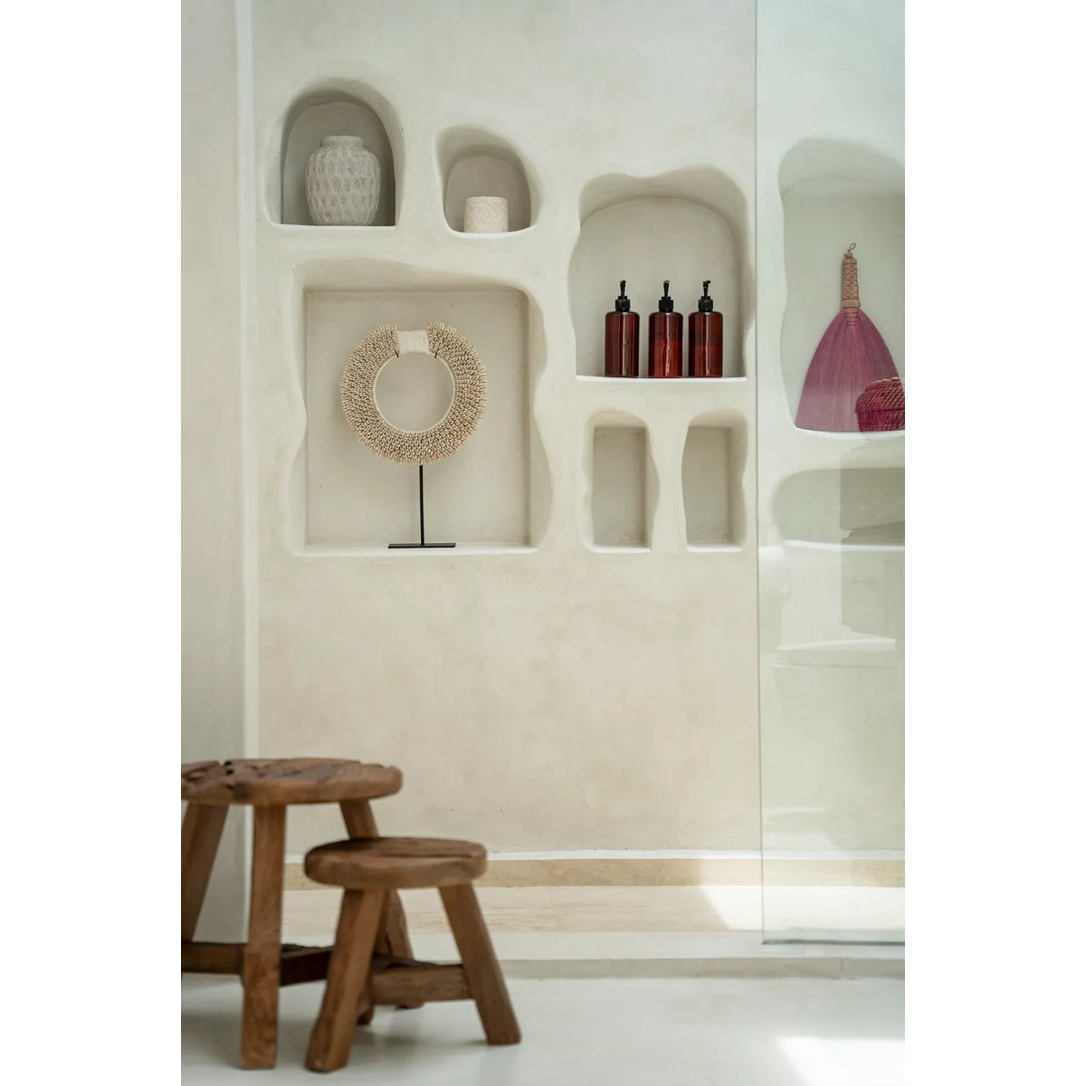 Dit prachtige statement-stuk is een ring van overlappende schelpen die een prachtig kustgevoel creëert. Een echte eye-catching toevoeging aan elk interieur.