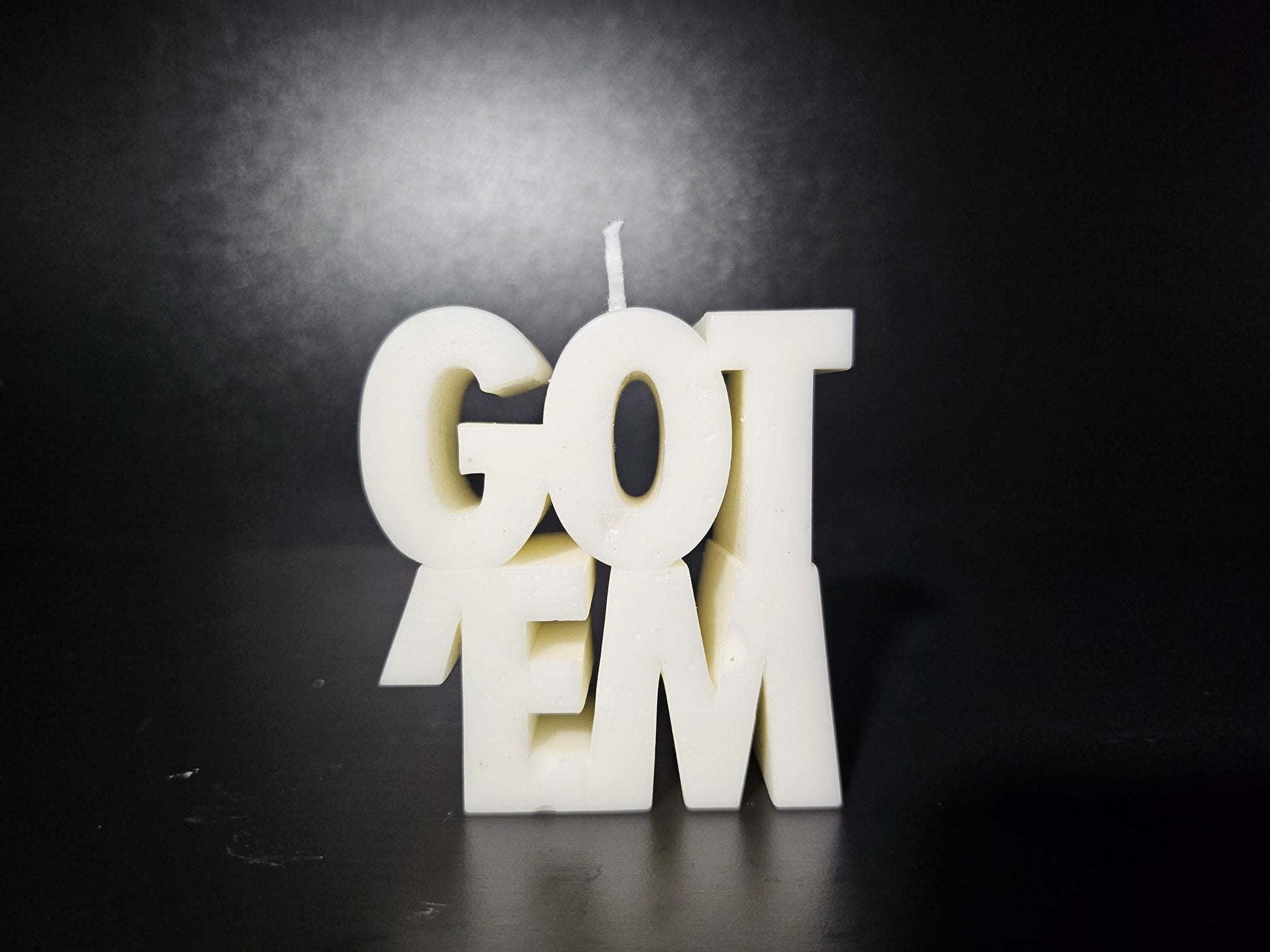 Deze Zwart Online kaars bevat de iconische GOT 'EM-uitdrukking die vaak wordt gebruikt onder sneakerheads. Geef het cadeau aan je sneakerfanvriend, en zij kunnen een GOT 'EM-kaars aansteken om de aankoop van een nieuw paar langverwachte sneakers te vieren .