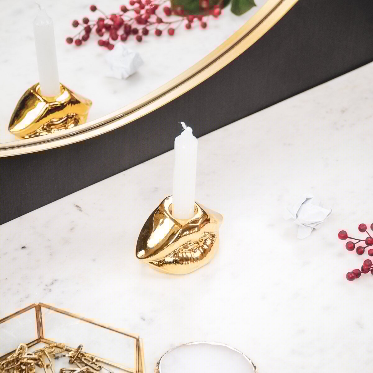 Housevitamin Lips Don't Lie Kandelaar - Goud - 10,5x6,5x5,5cm