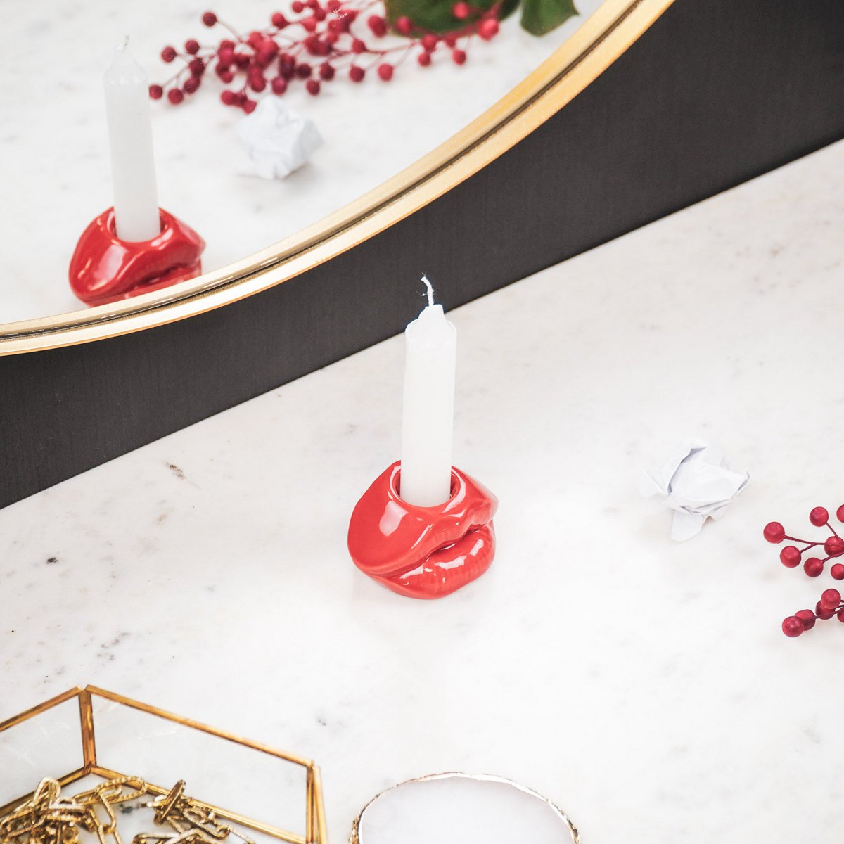 Housevitamin Lips Don't Lie Kandelaar - Rood - 7x5,5x4cm
