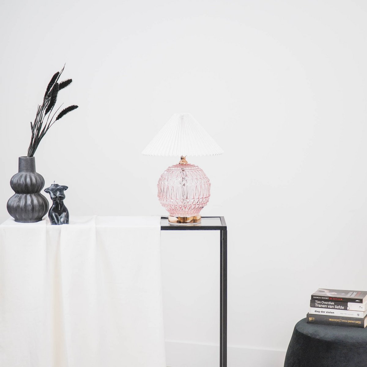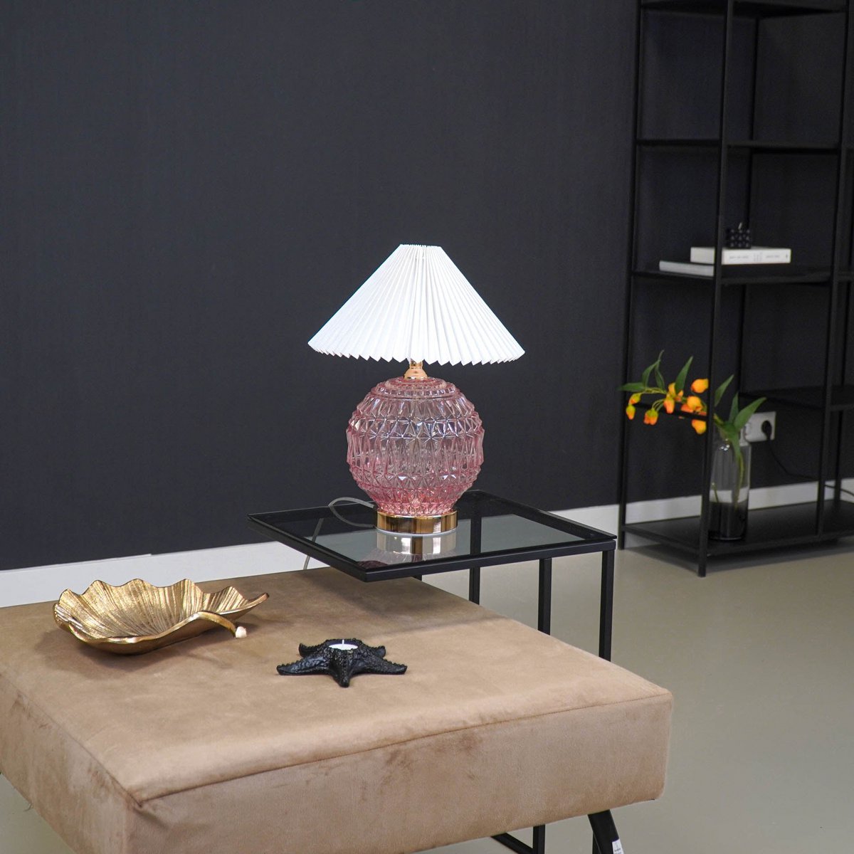 KRISTALHELDER!- Deze glazen tafellamp heeft een kristalreliëf, wat hem super chique maakt. Wanneer je deze tafellamp met voet van glas verlicht, gaat hij nog meer stralen! Kies voor een ledlamp van 2 Watt voor een zachte sfeer en 4 watt als je hem graag als leeslamp gebruikt. Belangrijke kenmerken: - Gemaakt van roze gekleurd glas - Inclusief snoer met aan/uit schakelaar - Gloeilamp en lampenkap zijn niet inbegrepen - E27 fitting - Afmeting lamp: 19x19x20cm - Afmeting snoer: 1 meterStyling tip: Geef deze chique kristallen glazen tafellamp wat spotlight door door het op een stapel boeken te plaatsen.