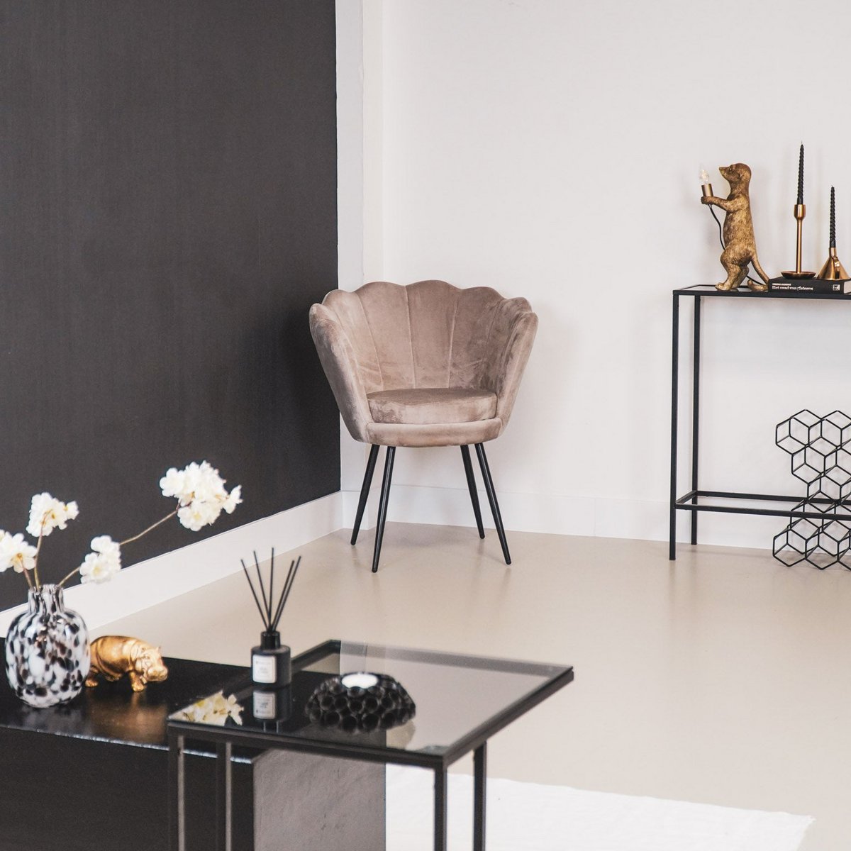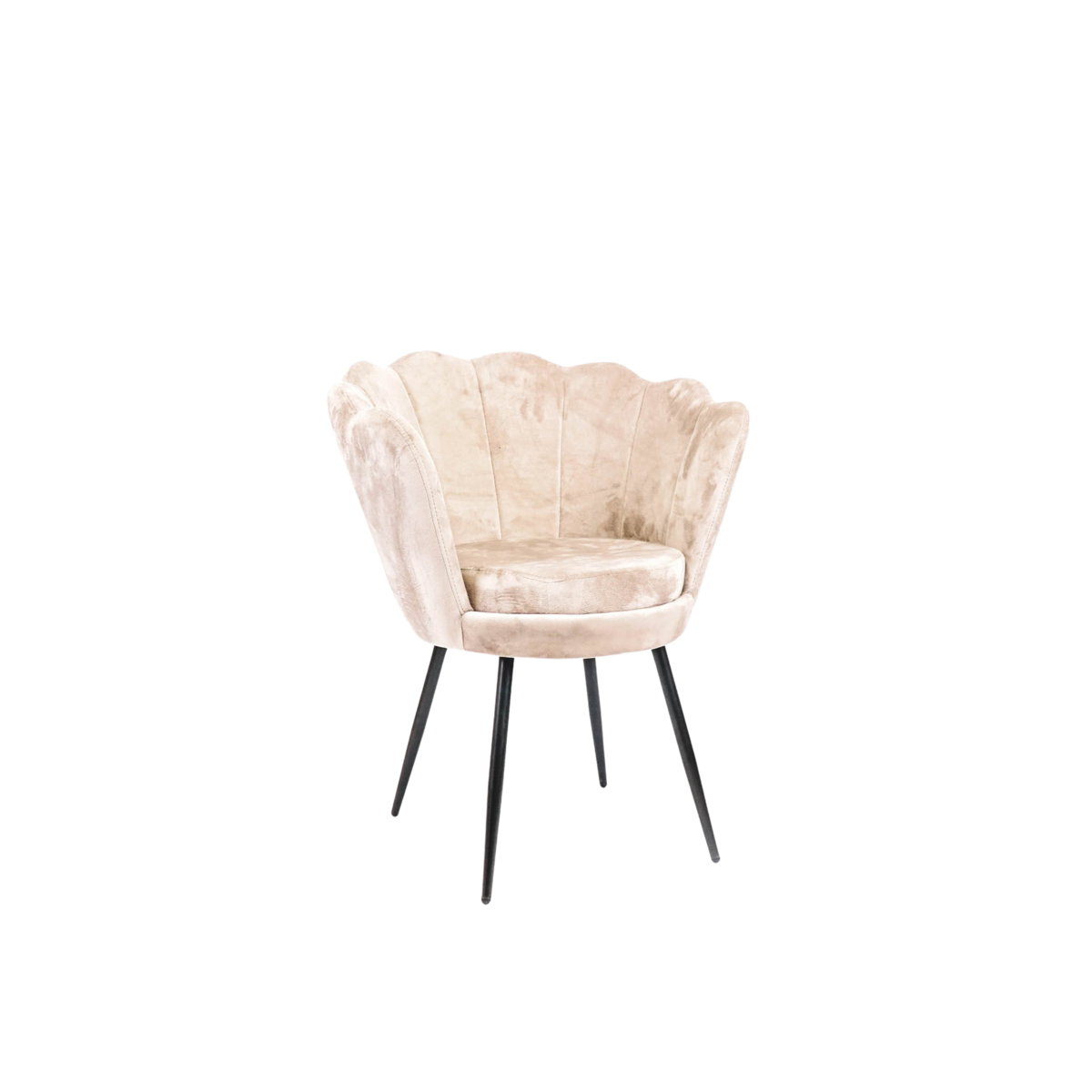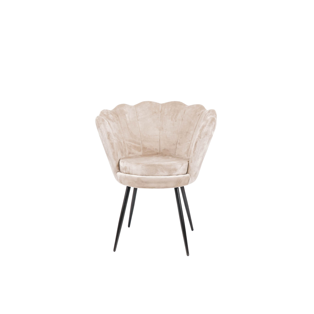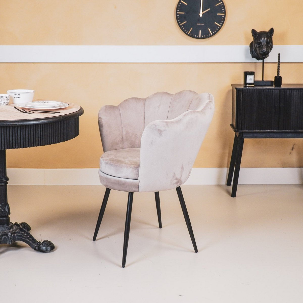 ONTMOET DE VOORZITTER - Hier is de voorzitter van jouw interieur! Deze fluwelen stoel in schelpvorm is chique en speels tegelijk. Dankzij de fluwelen stof is de stoel erg knuffelig. Deze schelpvormige stoelen staan prachtig aan uw eettafel, maar voegen ook elegantie toe aan uw slaapkamer, overloop of hal. De afmeting van de stoel is 68x65x83cm en de zwart metalen poten zijn circa 36 cm hoog. De zitting is erg stevig, wat erg prettig is. Belangrijke kenmerken: - Let op: stevige zitting - Set van 2 - Fluwelen look en feel - Zwarte metalen poten - Afmeting: 68x65x83cmStylingtip: Deze schelpstoel zal ook prachtig staan in je slaapkamer