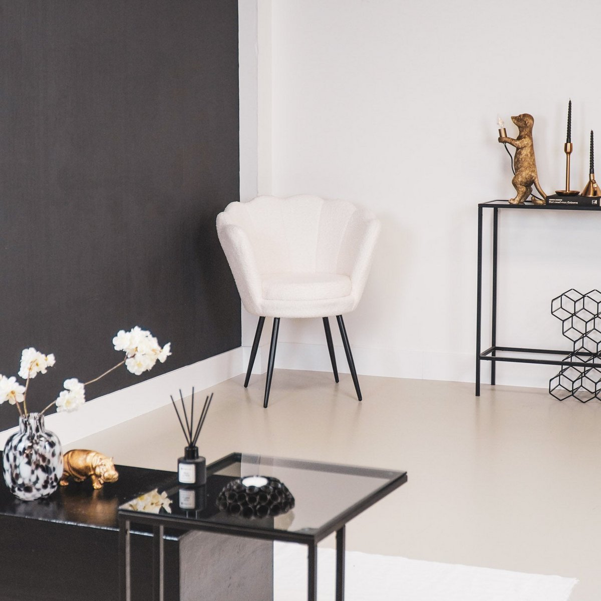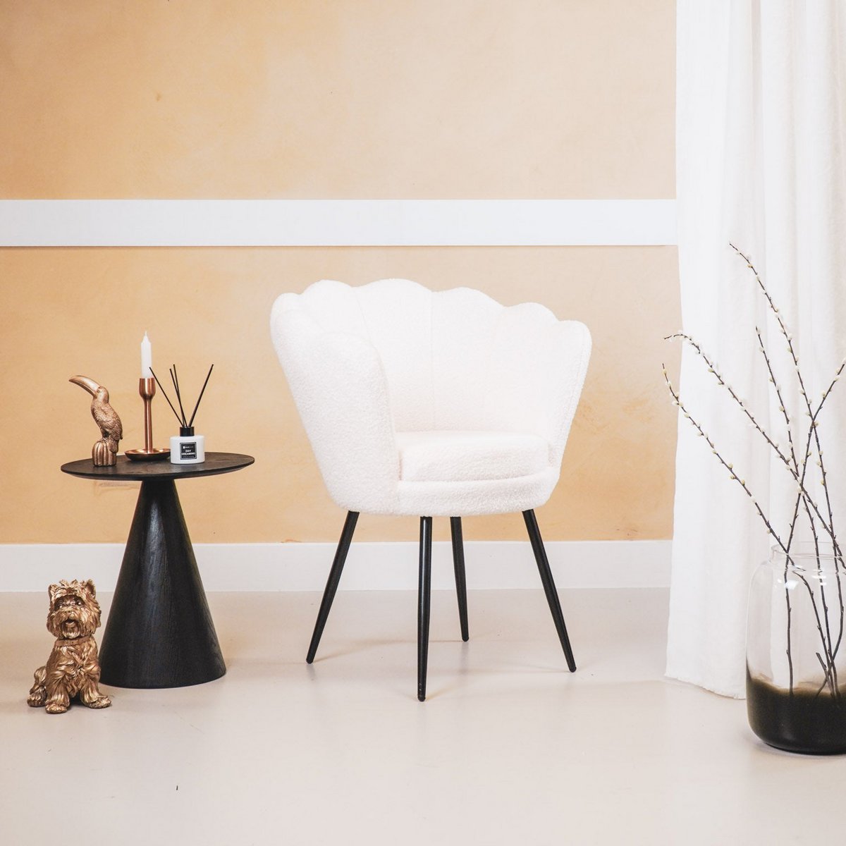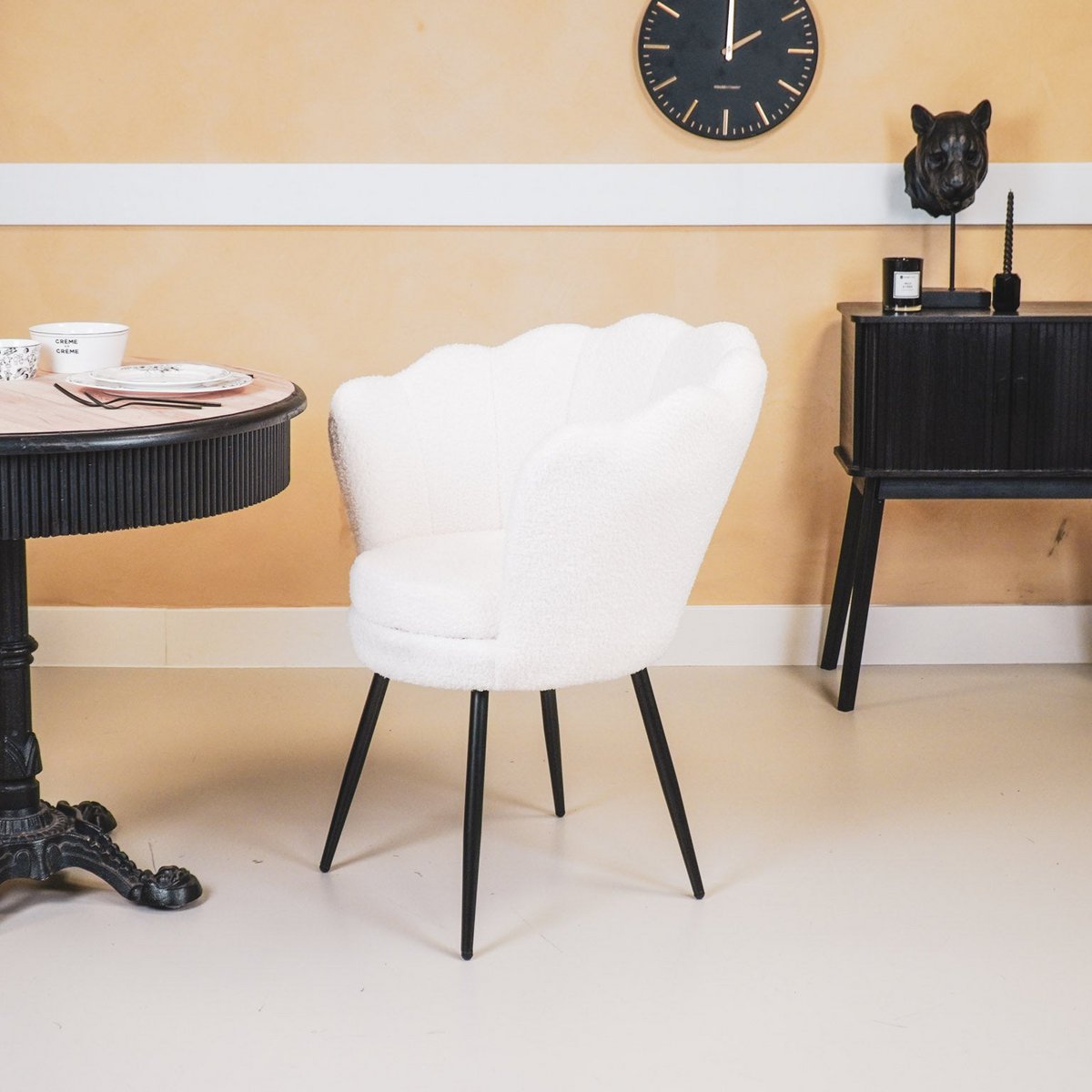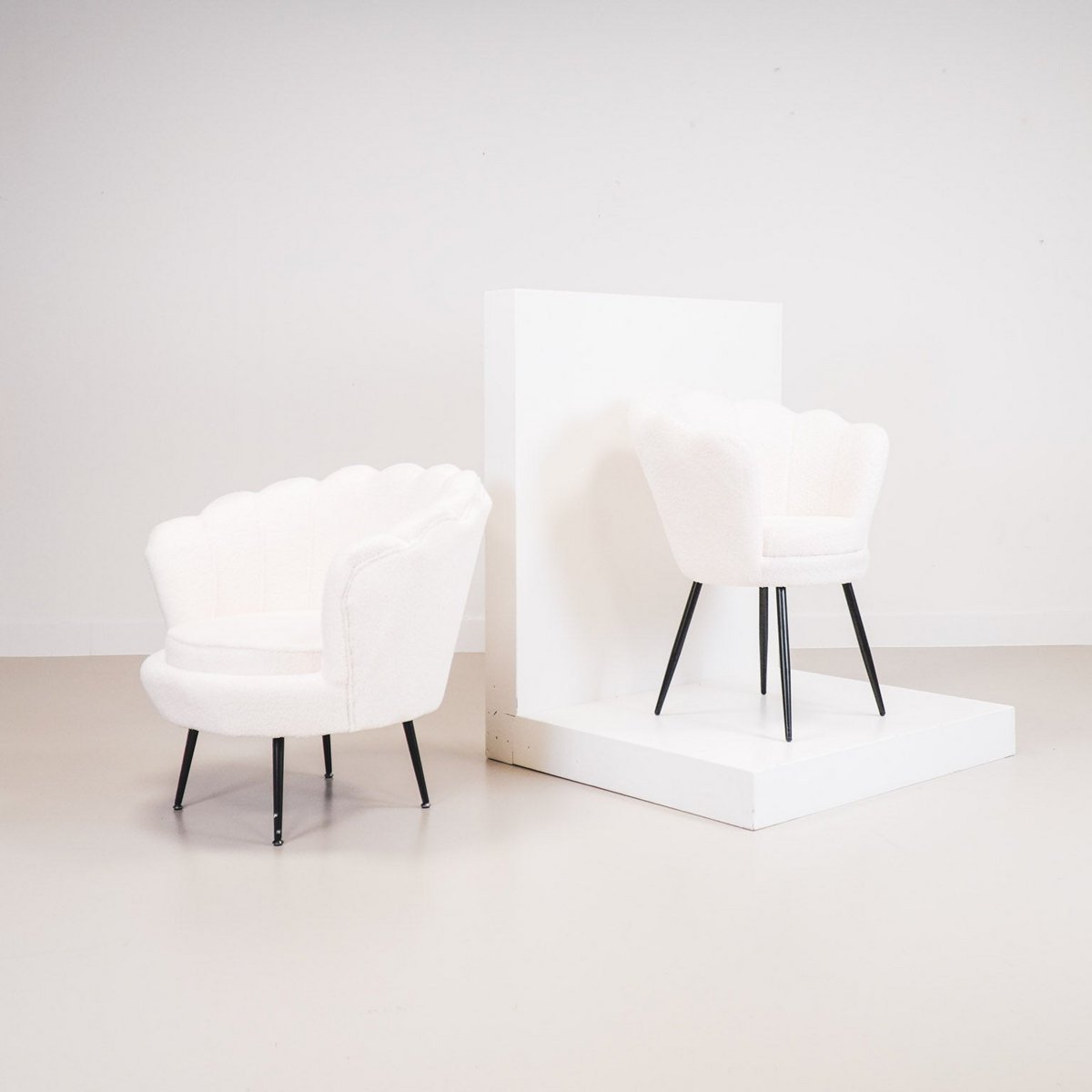 ONTMOET DE VOORZITTER - Hier is de voorzitter van jouw interieur! Deze fluwelen stoel in schelpvorm is chique en speels tegelijk. Dankzij de fluwelen stof is de stoel erg knuffelig. Deze schelpvormige stoelen staan prachtig aan uw eettafel, maar voegen ook elegantie toe aan uw slaapkamer, overloop of hal. De afmeting van de stoel is 68x65x83cm en de zwart metalen poten zijn circa 36 cm hoog. De zitting is erg stevig, wat erg prettig is. Belangrijke kenmerken: - Let op: stevige zitting - Set van 2 - Fluwelen look en feel - Zwarte metalen poten - Afmeting: 68x65x83cmStylingtip: Deze schelpstoel zal ook prachtig staan in je slaapkamer