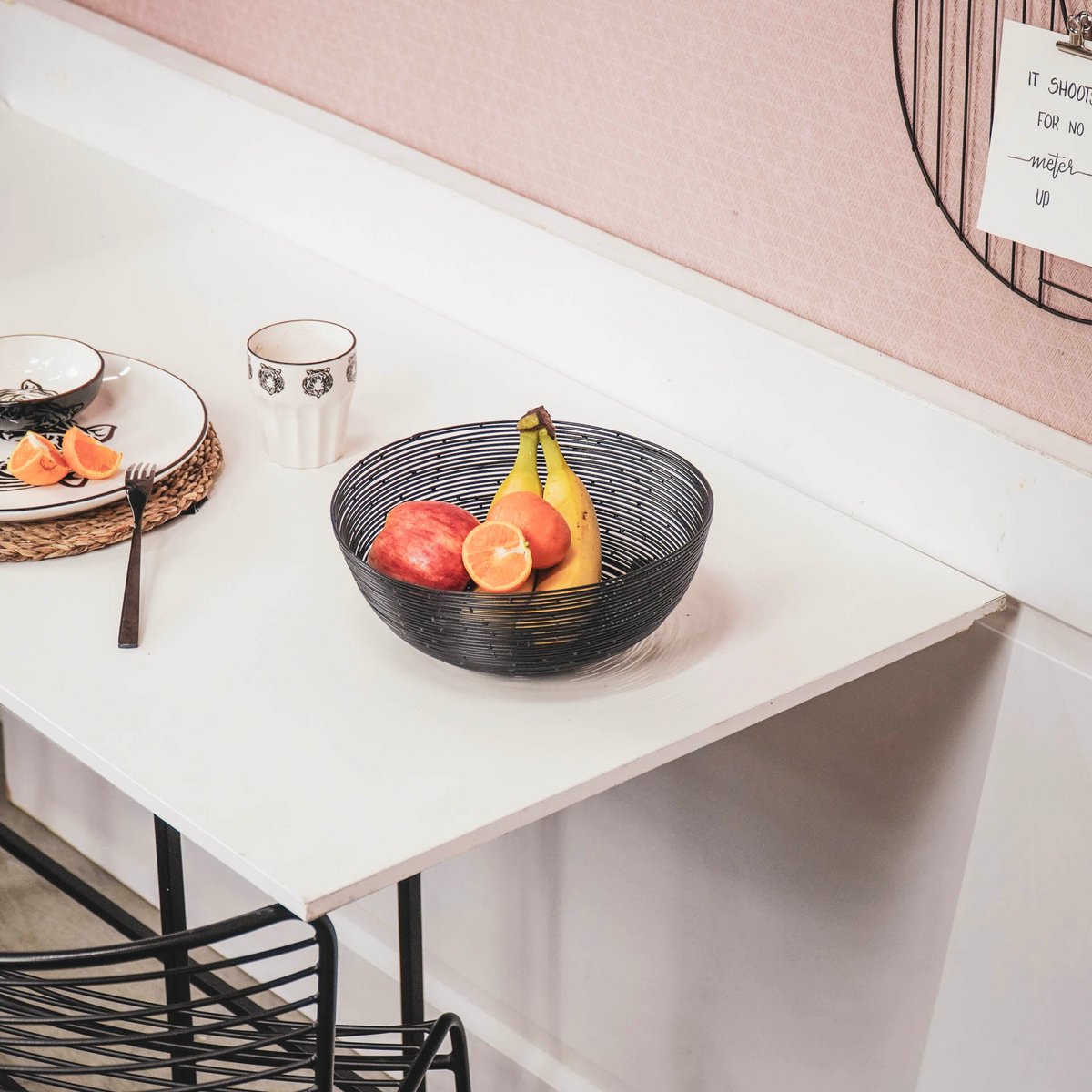 VOOR AL JE FRUITLOVERS: Presenteer het voortaan in stijl! Voor alle fruithaters: al het andere binnen is ook prima bij ons!Belangrijke kenmerken:- Gemaakt van messing/metaal- Afmeting: 26x26x10 cmStyling Advies: Hang hem aan de muur om je muur een sprankeling te geven