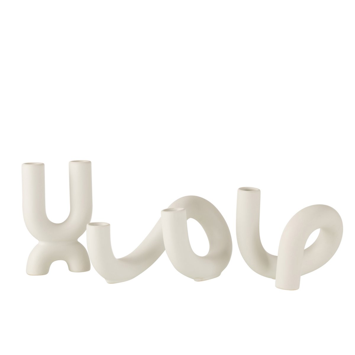 J-Line Kaarsenhouder Torsie 2 Kaarsen Keramiek Wit
