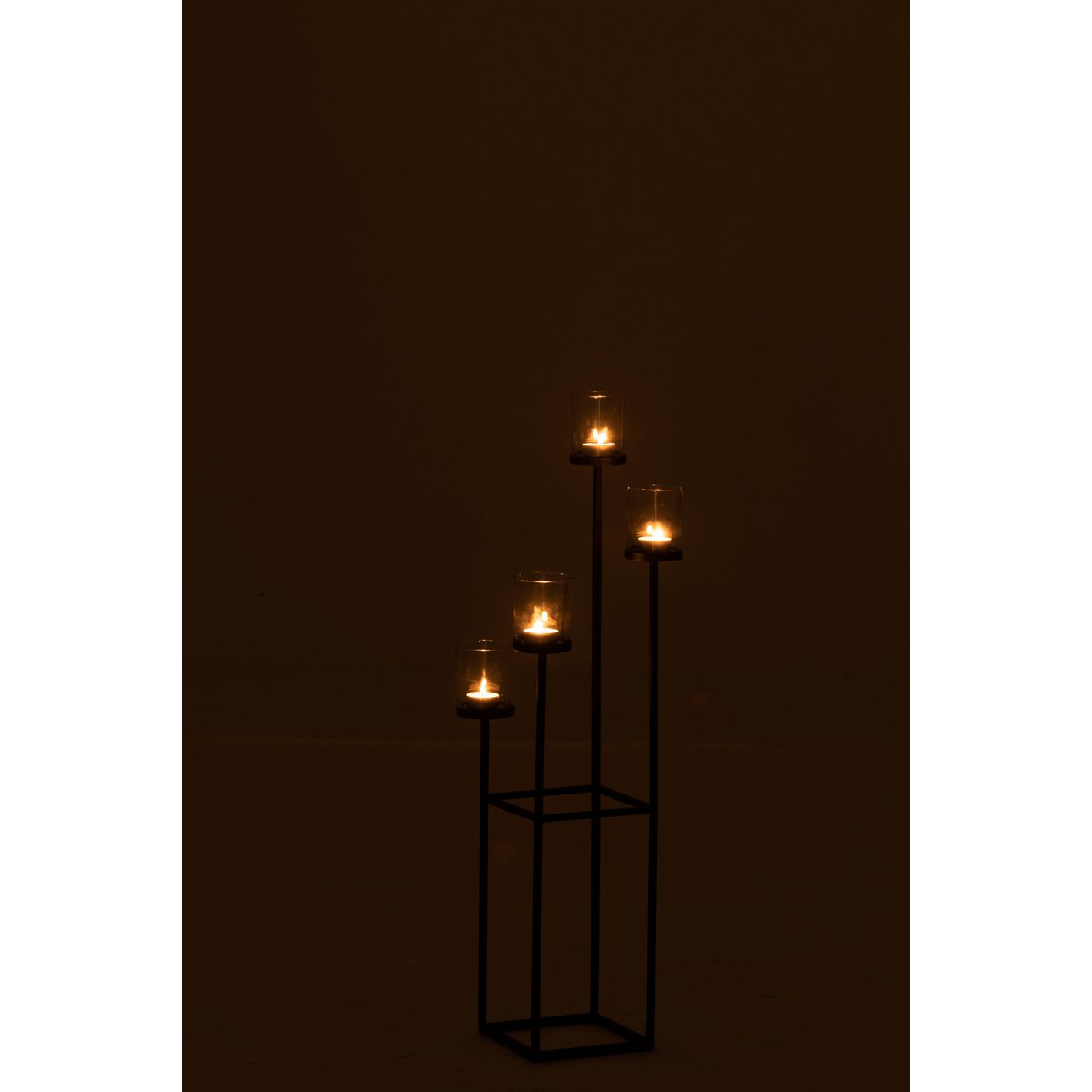 Kaarshouder 4 Delen Metaal/Glas Zwart