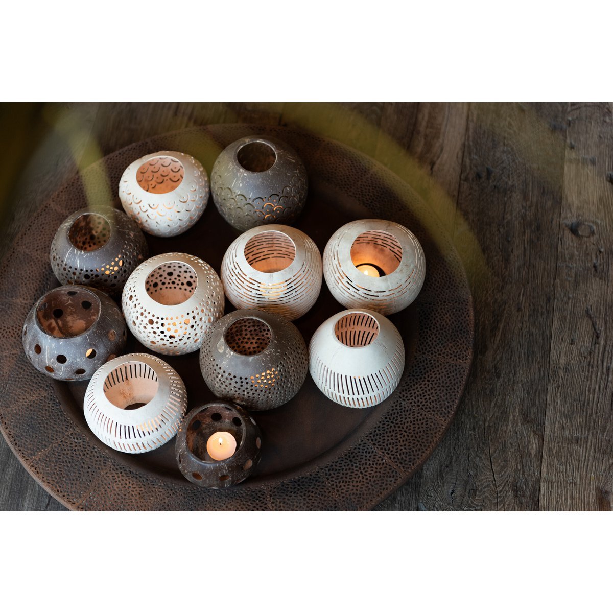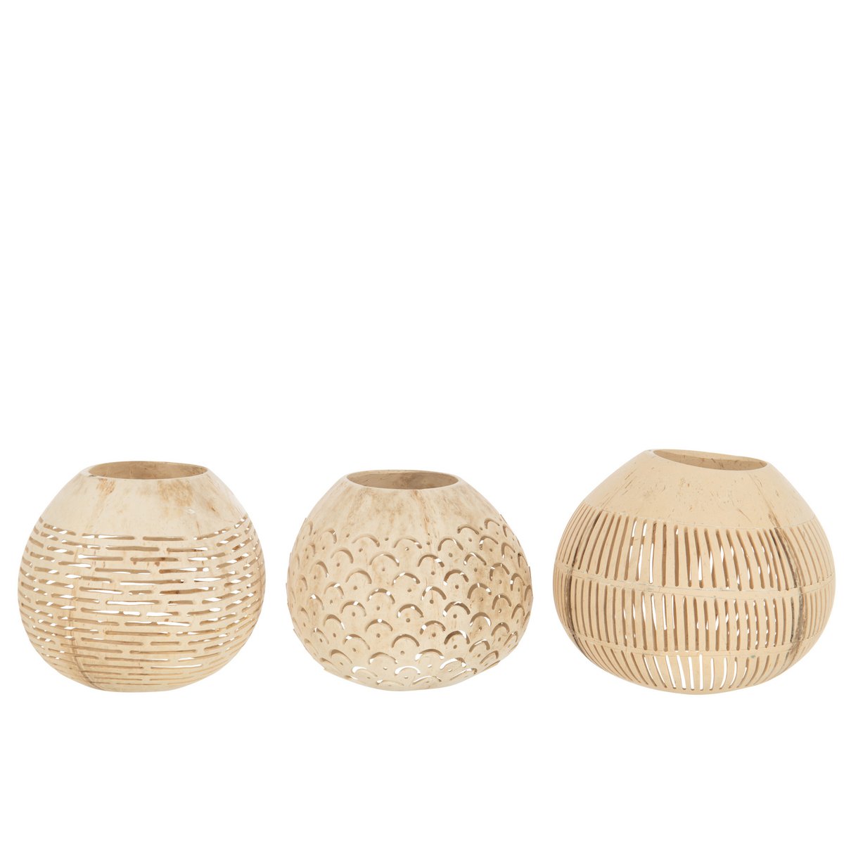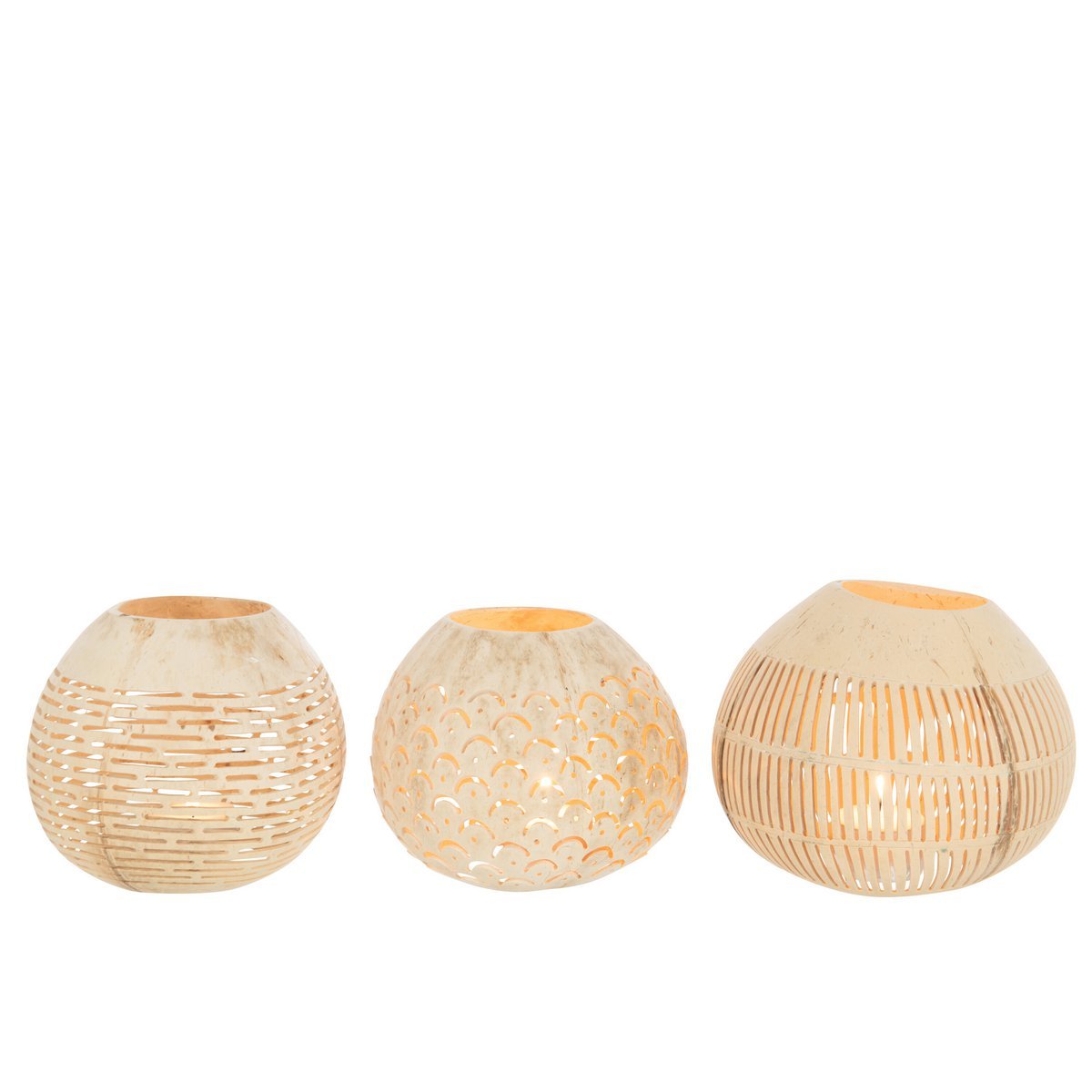 J-Line Theelichthouder Kokosnoot Lijnen Naturel Assortiment Van 3