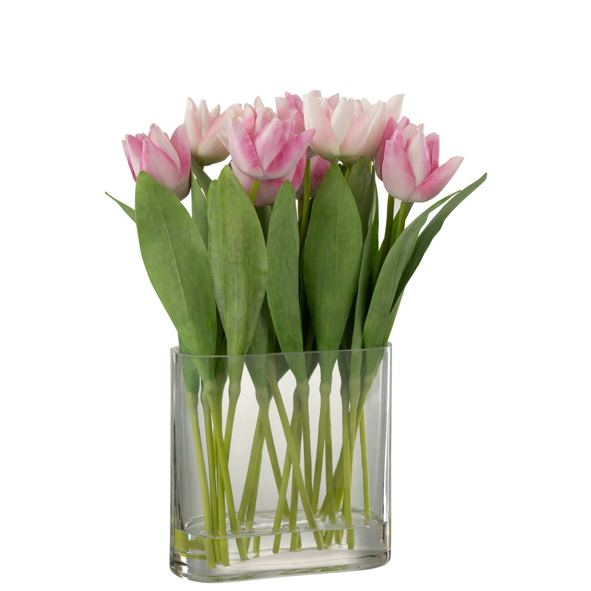 J-Line Tulpen In Vaas Ovaal Plastiek Glas Roze